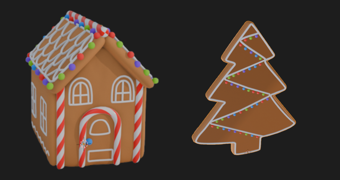 Création 3D de bonbons low poly pour un univers de jeu interactif et immersif.